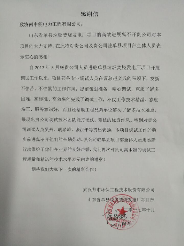 深能源单县项目获业主表彰