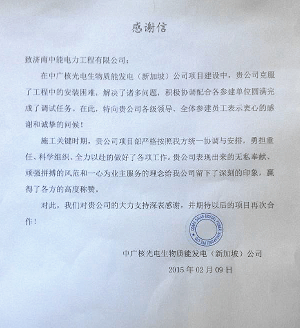 新加坡生物质能发电项目顺利通过72+24小时试运行